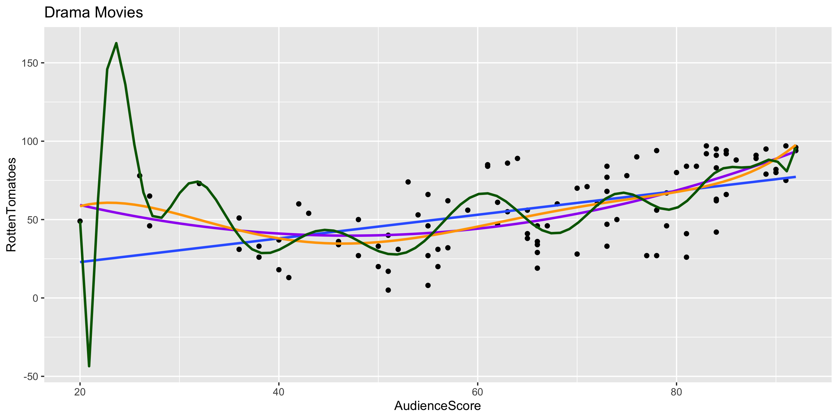 drop_na(Genre, AudienceScore, RottenTomatoes)