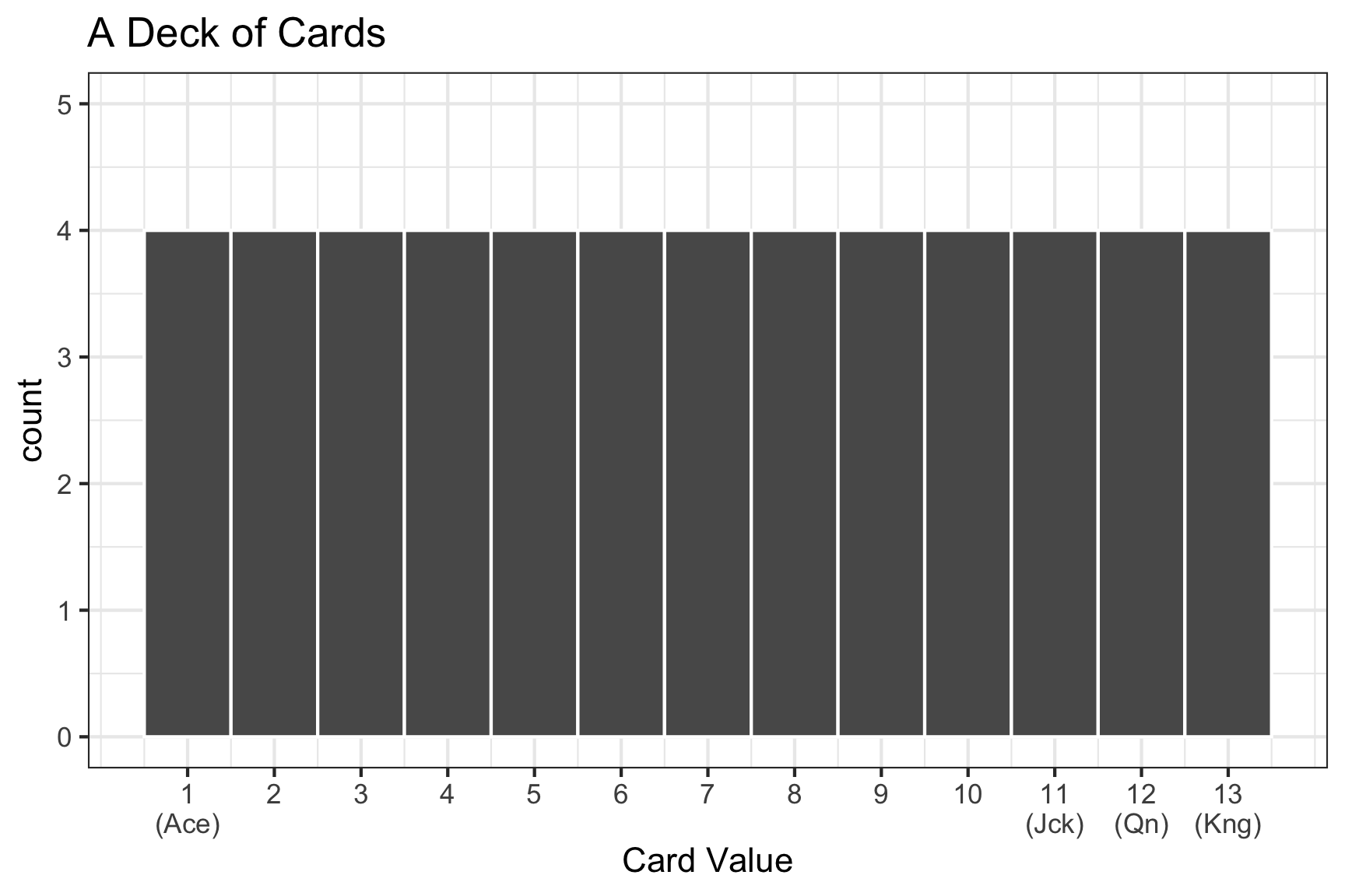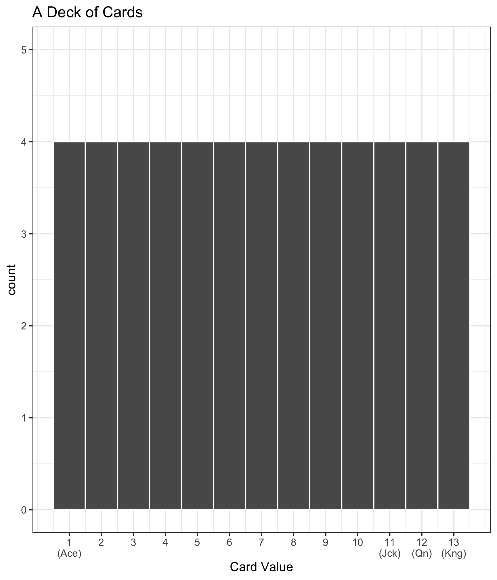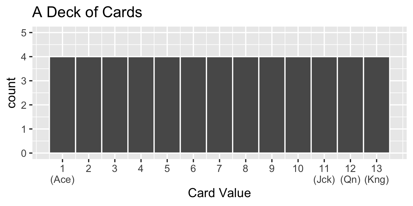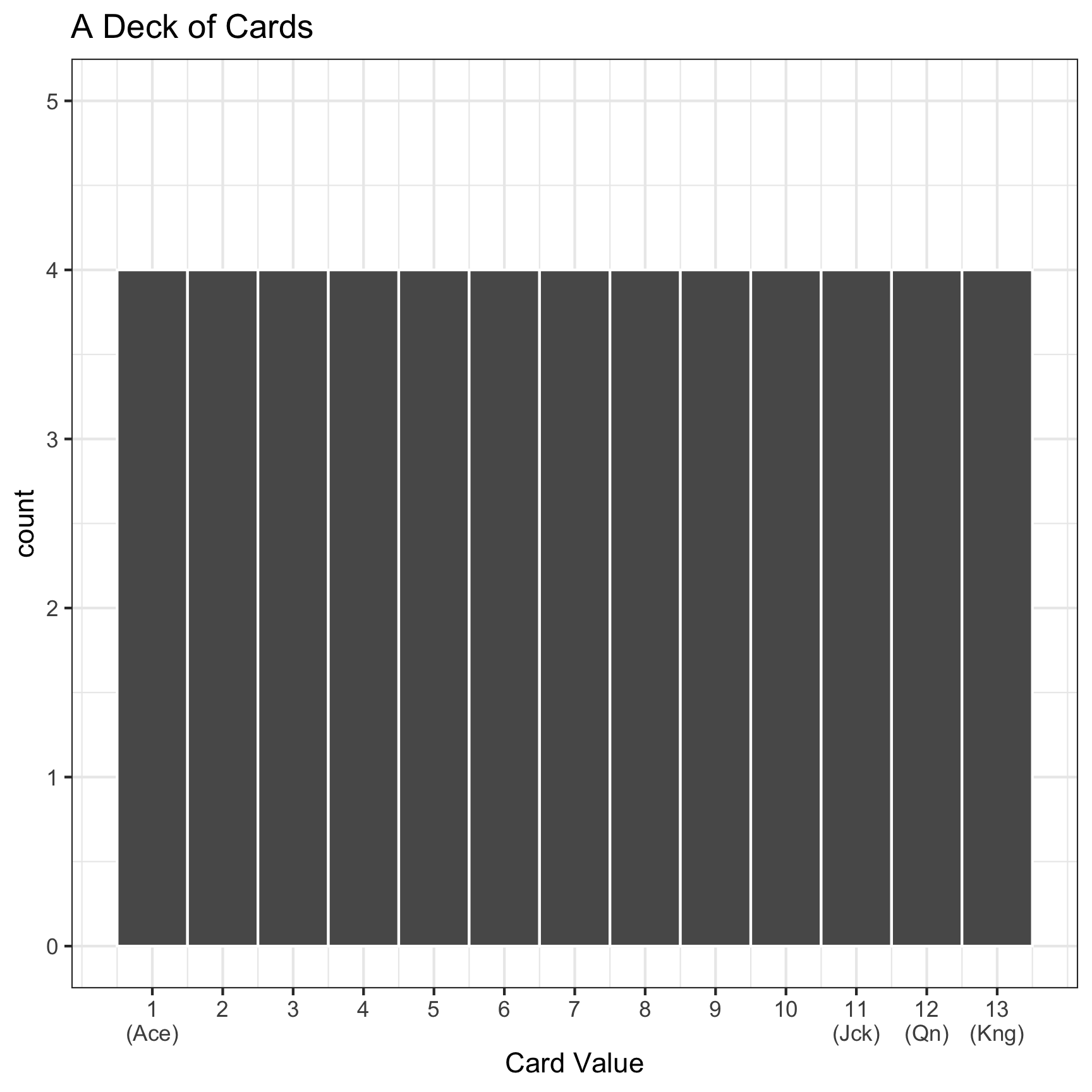 The distribution of numbers in a deck of cards looks like: