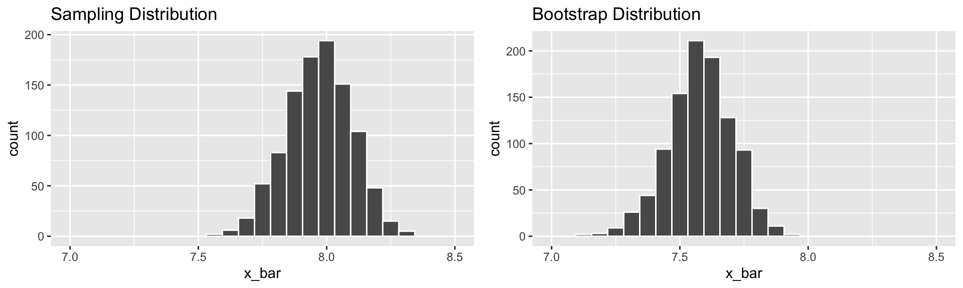 What are the differences between a sampling distribution and a bootstrap distribution?