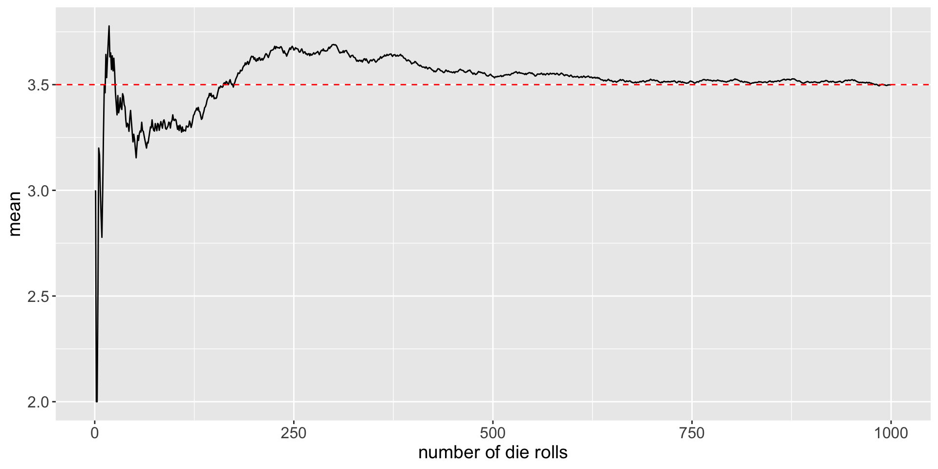 We can see that the expected value is \(3.5\)